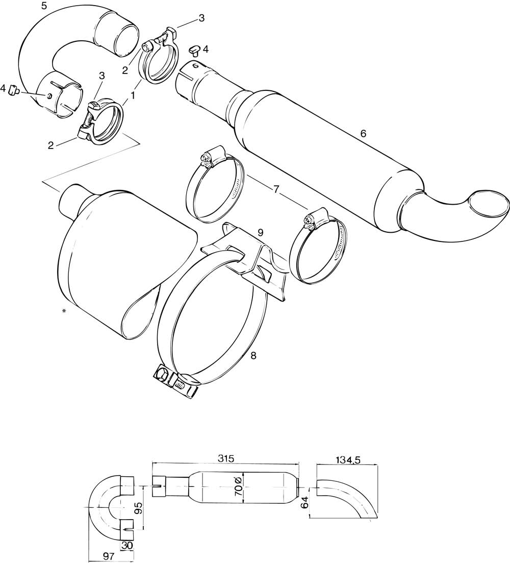 EXHAUST SYSTEM CONFIGURATION: STRAIGHT a Without hooks. b With hooks. c See SI-2ST-002. Parts