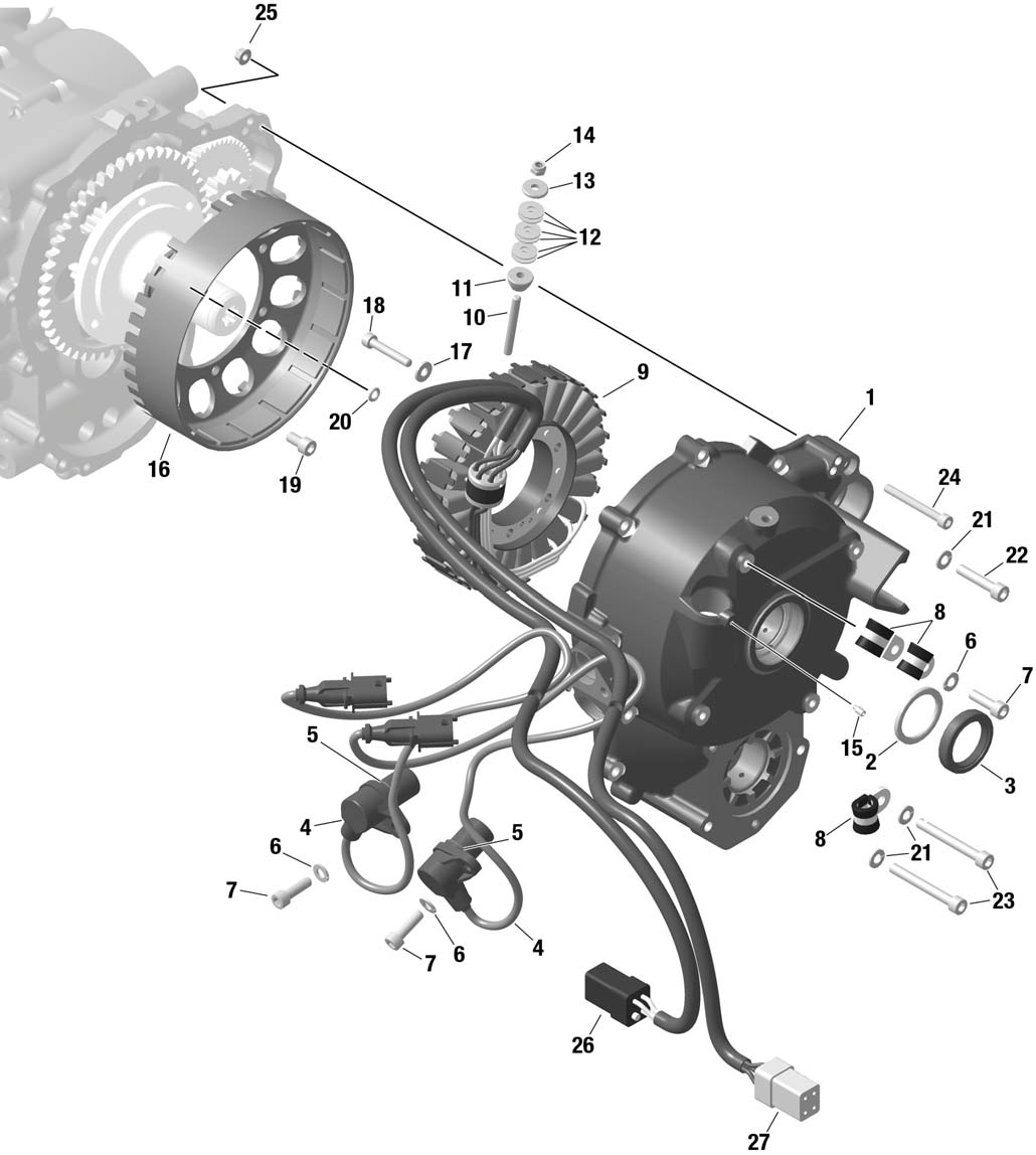 IGNITION HOUSING, STATOR, RECTIFIER REGULATOR, CRANKSHAFT POSITION SENSOR ASSY. For ROTAX 912 iS