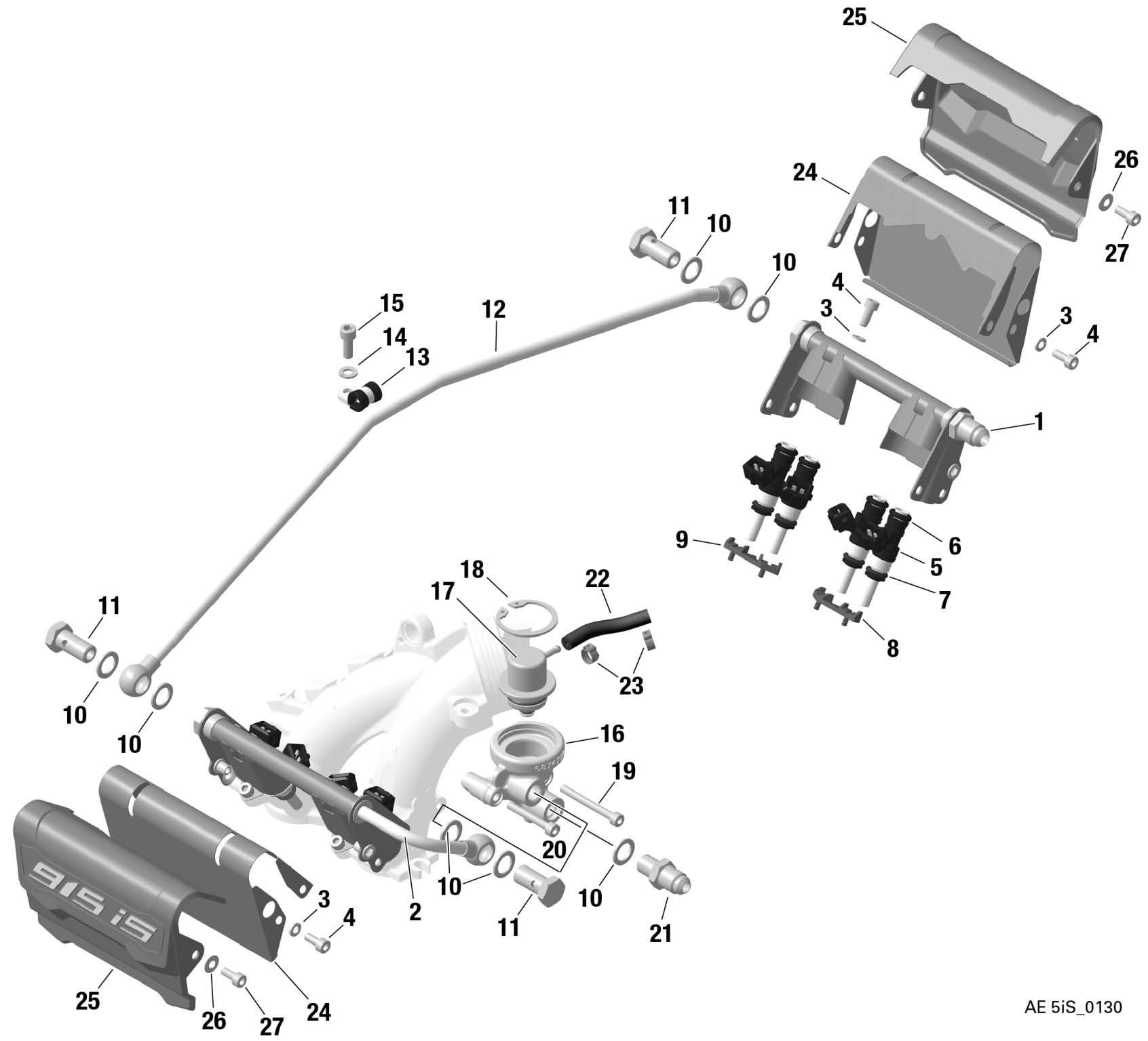 FUEL INJECTOR, FUEL RAIL, PRESSURE REGULATOR, FUEL RAIL COVER For ROTAX 915 iS